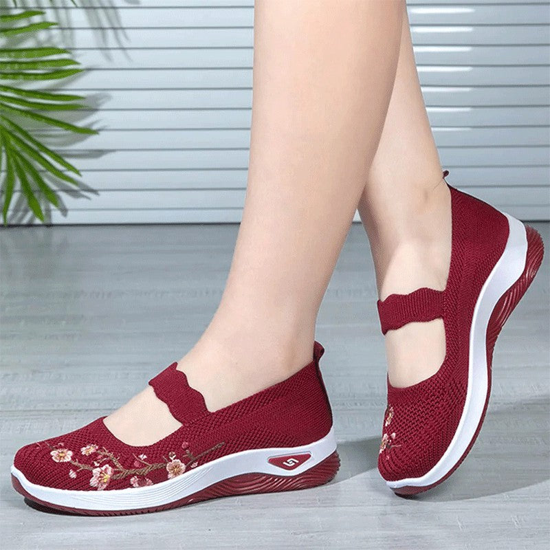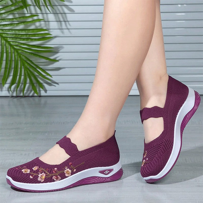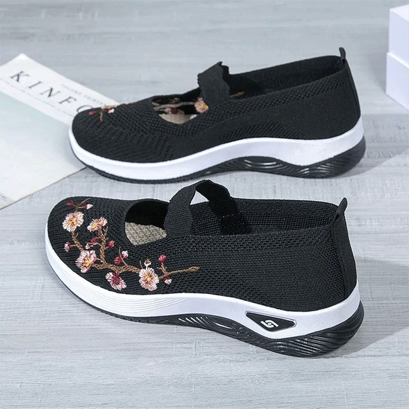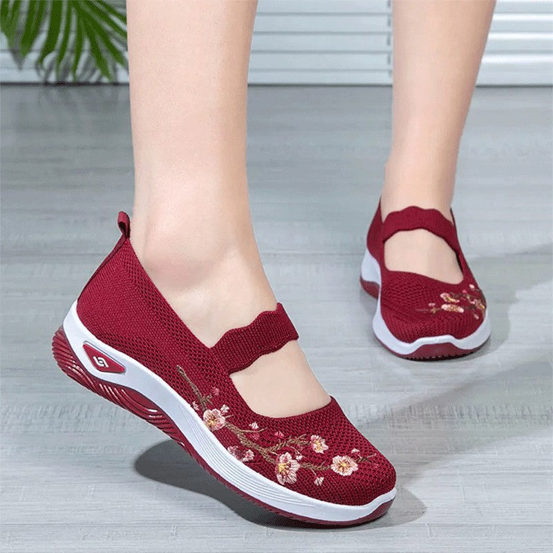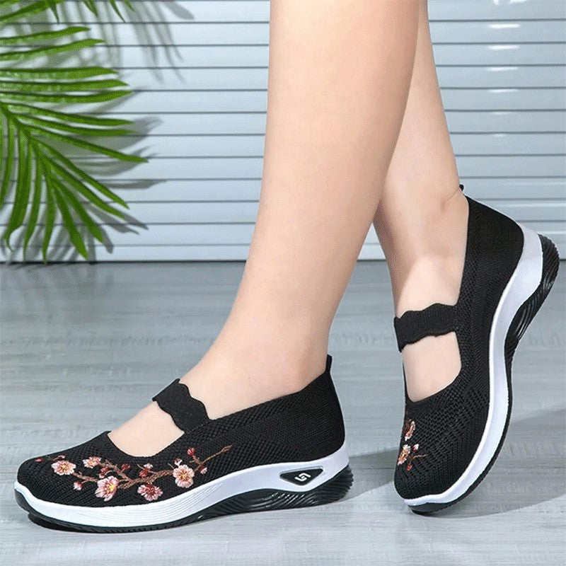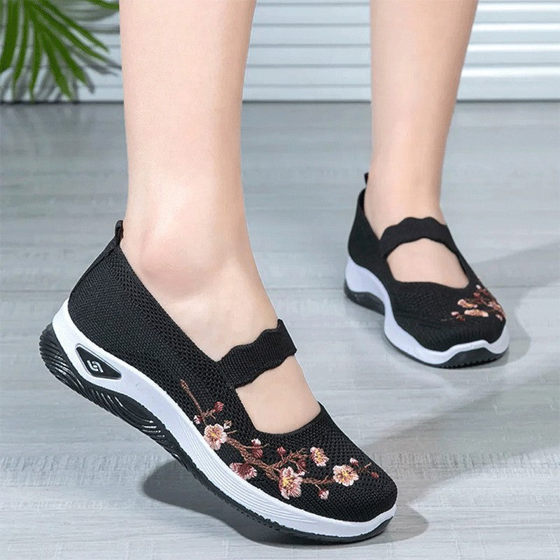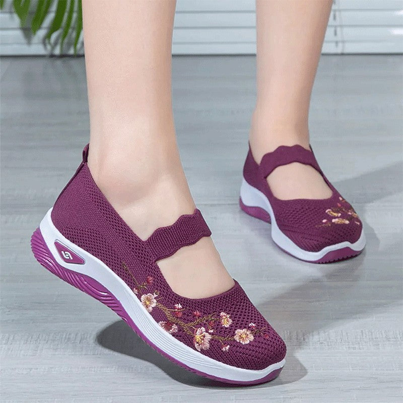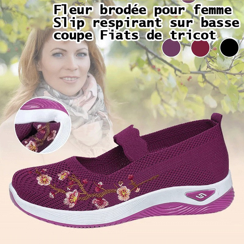 Chaussures plates respirantes brodées de fleurs pour femmes
