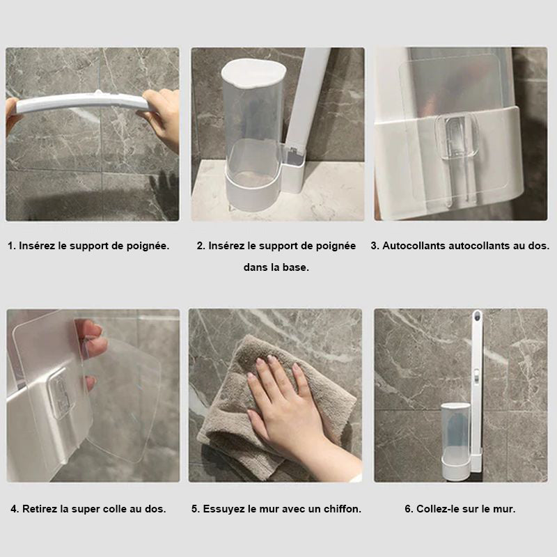 Cette brosse de toilette avec support peut être utilisée non seulement pour nettoyer les toilettes, mais également pour nettoyer les éviers, les vitres de la salle de bain et les taches sur le sol. C'est une bonne aide pour le nettoyage domestique.