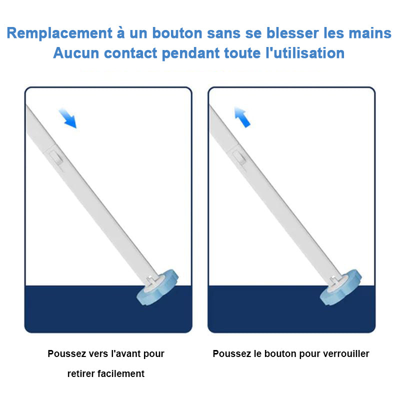 Après avoir nettoyé les toilettes, appuyez sur le bouton de la poignée des toilettes pour jeter la tête d'éponge, ce qui est pratique et hygiénique à utiliser. Ne vous souciez plus des bactéries et des mauvaises odeurs !