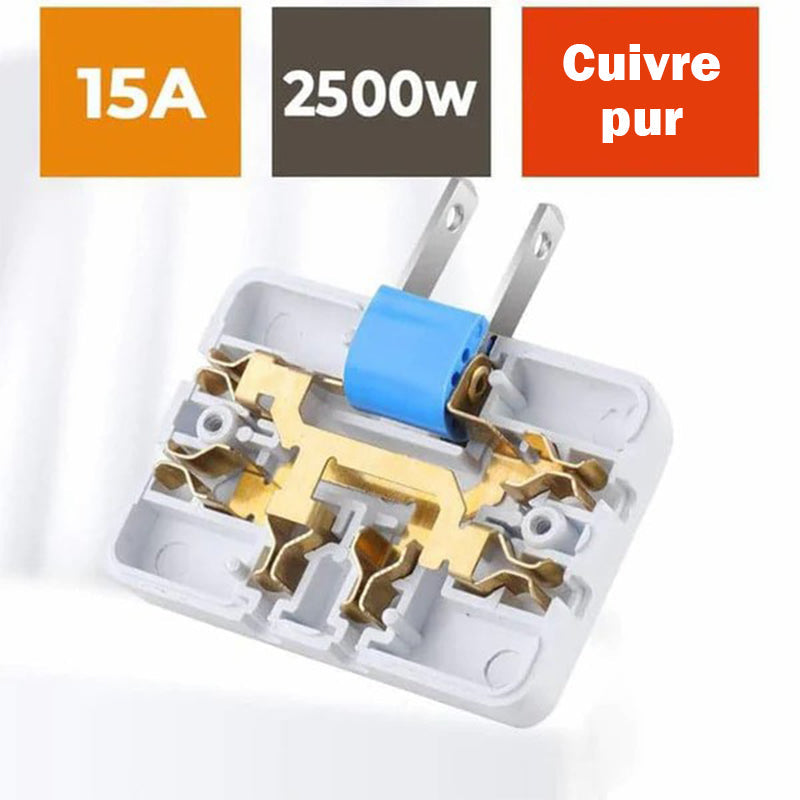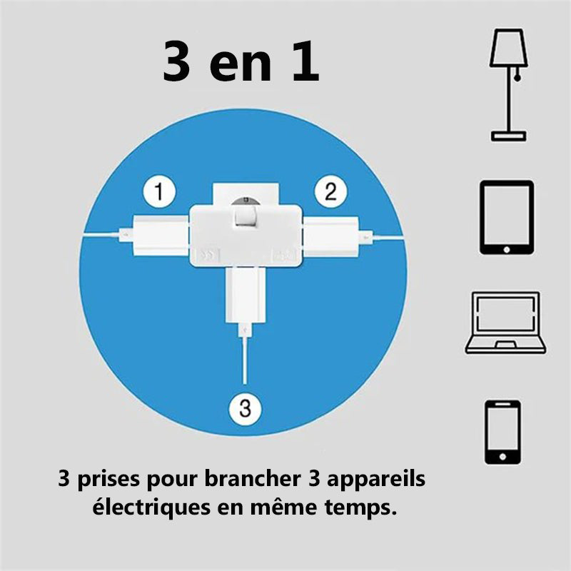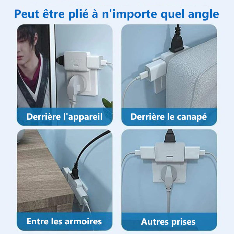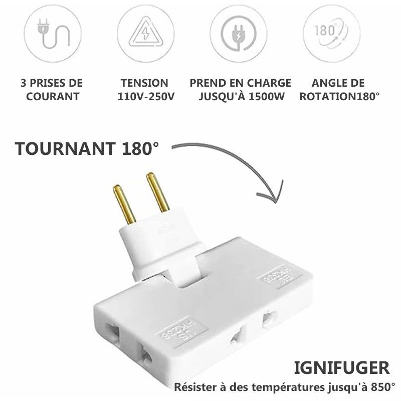 Convertisseur de prise 3 en 1 rotative à 180°