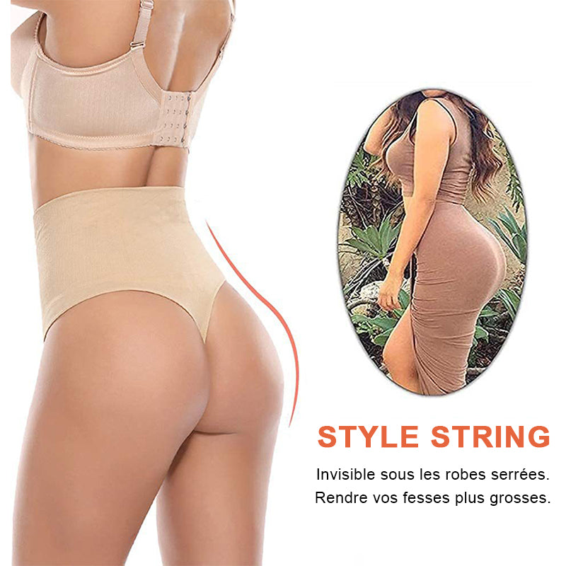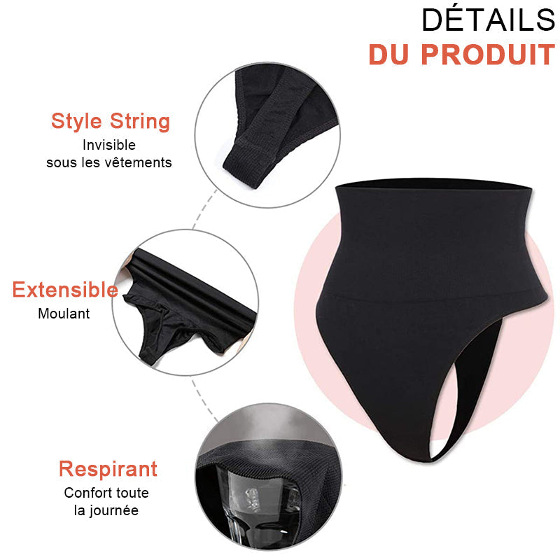 String de sous-vêtement pour femmes avec une couverture arrière minimale mais conçu pour une couverture avant confortable. Il est conçu avec une taille haute pour resserrer le ventre et lever les hanches.